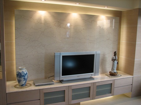 圖2 電視櫃的間接照明讓拋光石英地板更明亮更有層次